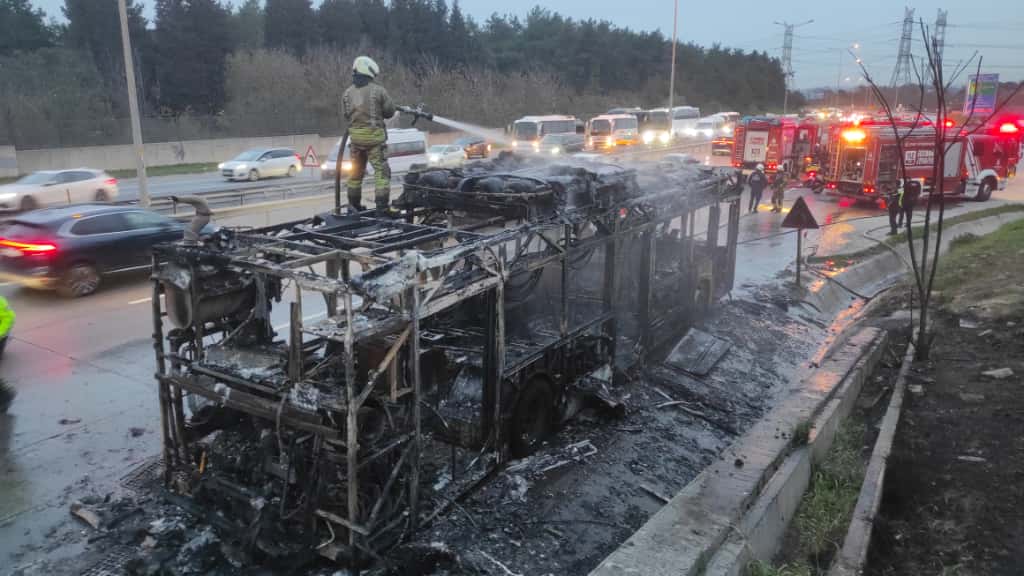 İETT otobüsü alev topuna döndü! Geriye demir yığını kaldı